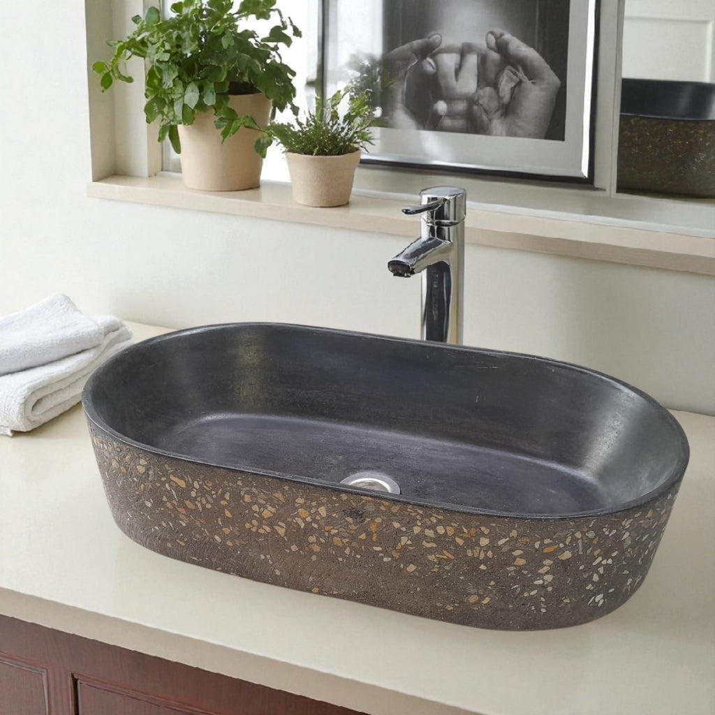 Gaia's Ark Black Namibian Dream Bespoke Concrete Sink 53 x 30 x 11.5cm